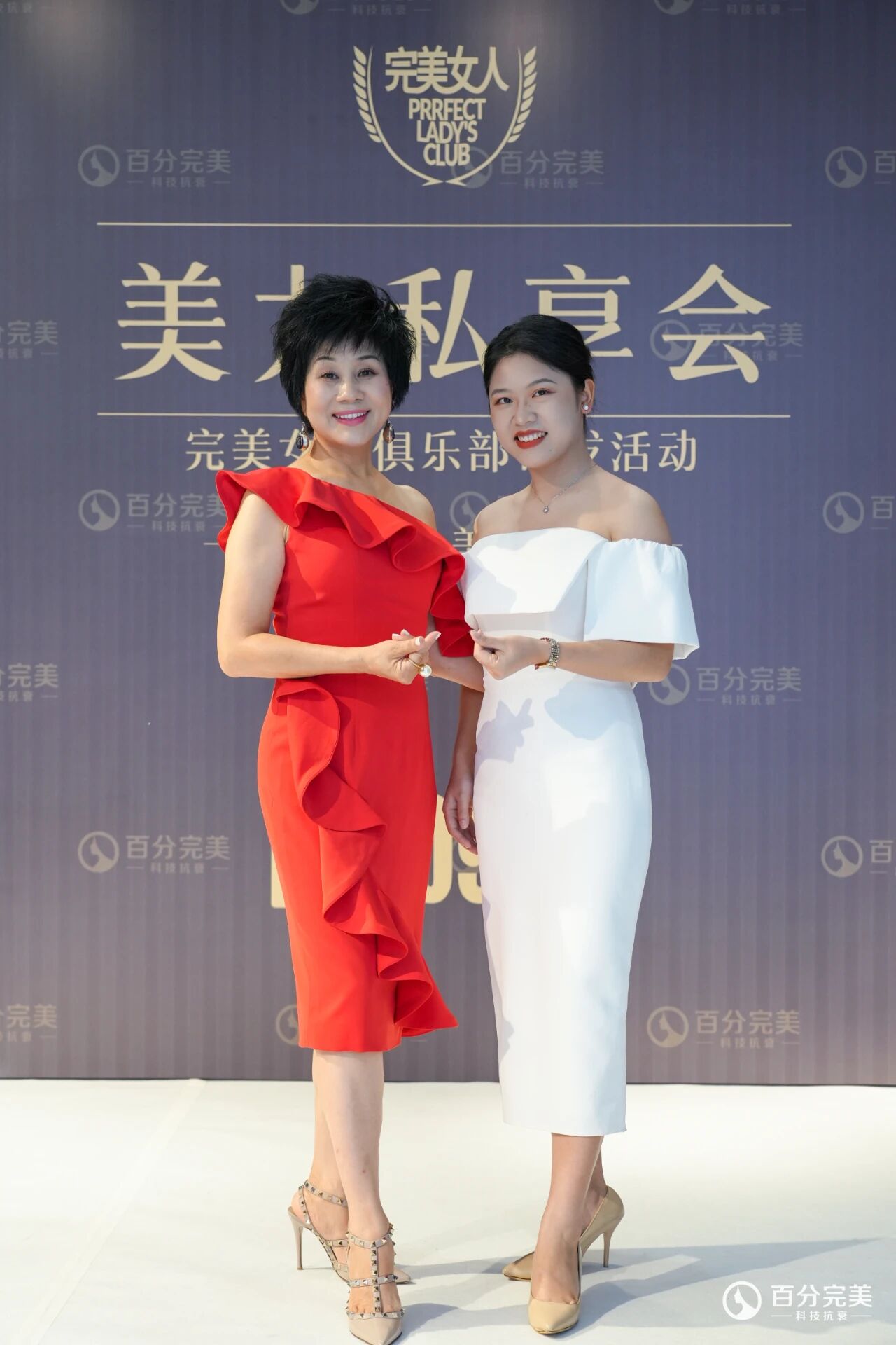 黄艳萍(左)在百分完美的幸福分享会上