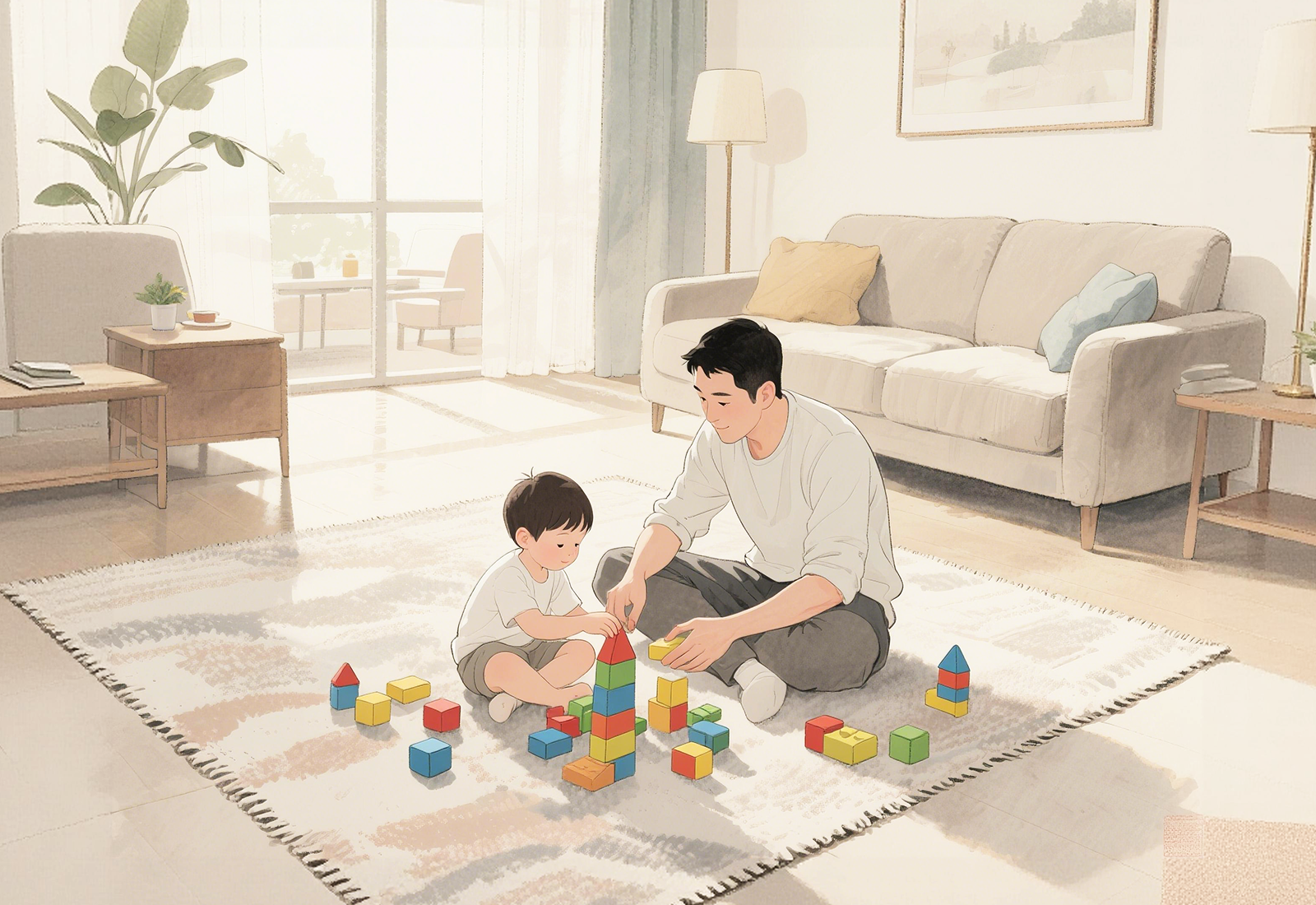 有一天,父子俩一起搭积木房子。儿子突然抬起头,说了这么一句:“爸爸我以后也要给你买房子,给妈妈买房子。”